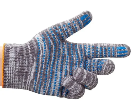 Перчатки хлопчатобумажные (Х/Б) с ПВХ напылением - средство для защиты рук, имеющее точечное ПВХ напыление на ладонной части. Способны защитить руки от производственных загрязнений, порезов, ссадин, химических и тепловых ожогов. Также перчатки обеспечивают защиту от скольжения и тем самым создают наиболее устойчивое сцепление пальцев рук с предметами.