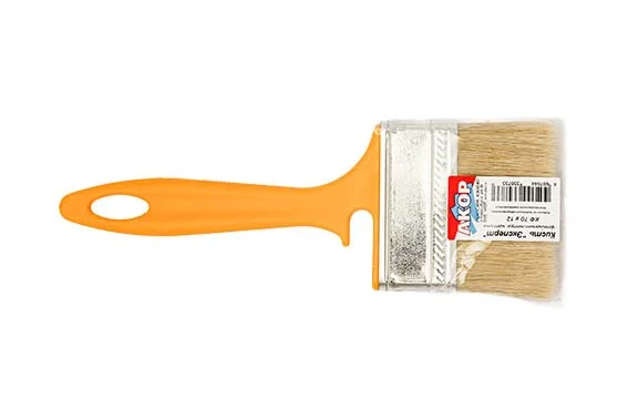 Кисть отличается высокой надёжностью благодаря прочной, эргономичной ручке и надёжной фиксации щетины. Металлический бандаж плотно прижимает щетину к основанию, исключая её расшатывание в процессе работы. Специальный профиль рукоятки обеспечивает уверенный хват и предотвращает скольжение в руке. Щетина оптимальной толщины хорошо впитывает краску, что ускоряет процесс окрашивания и повышает его качество.