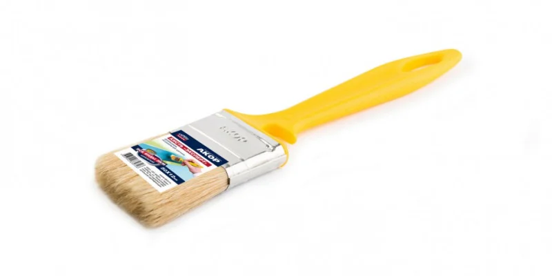 Щетина изготовлена из натурального материала светлого цвета — она обладает высокой впитывающей способностью и обеспечивает равномерное распределение лакокрасочных материалов без потёков и разводов. Благодаря ширине 50 мм кисть идеальна для окрашивания поверхностей средней площади: дверей, плинтусов, мебельных элементов.