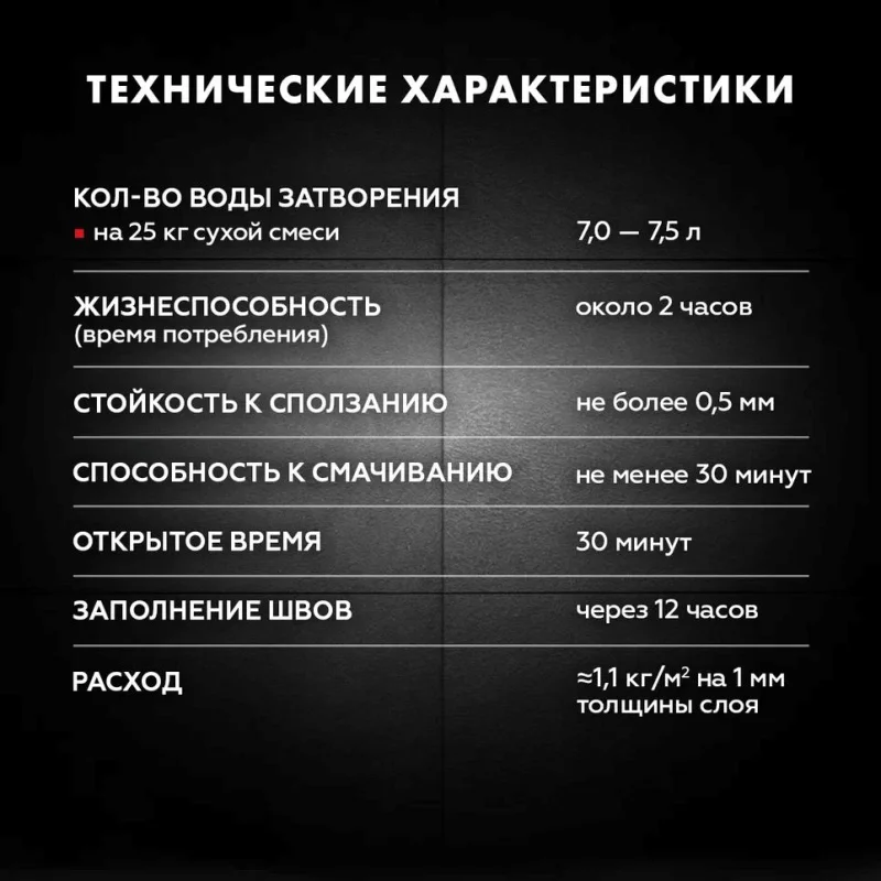 • устойчив к сползанию плитки;