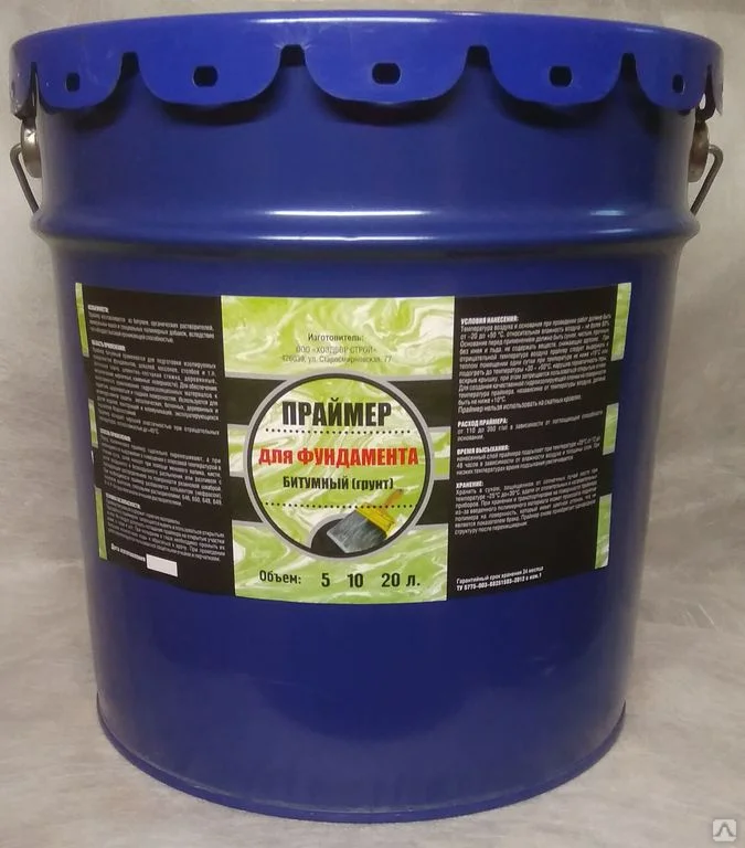 Область применения: Праймер битумный применяется для подготовки изолируемых поверхностей фундаментов, цоколей, кессонов, столбов и т.п. (бетонная плита, цементно-песчаная стяжка, деревянные, металлические, кирпичные, каменные поверхности). Для обеспечения качественного приклеивания гидроизоляционных материалов к пористым, шероховатым и гладким поверхностям. Используется для антикоррозийной защиты металлических, бетонных, деревянных и других изделий, конструкций и коммуникаций, эксплуатирующихся под землей. Морозостойкий. Праймер обладает хорошей эластичностью при отрицательных температурах, теплостойкостью до +45°C.
