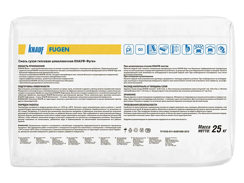 Сухая шпаклевочная смесь на основе гипса с полимерными добавками. Шпаклевка гипсовая КНАУФ-Фуген разработана специально для заделки стыков гипсокартонных КНАУФ-листов (ГКЛ). Не трескается и не дает усадки. Материал изготовлен из экологически чистого природного минерала (гипса) и не содержит вредных для здоровья человека веществ.