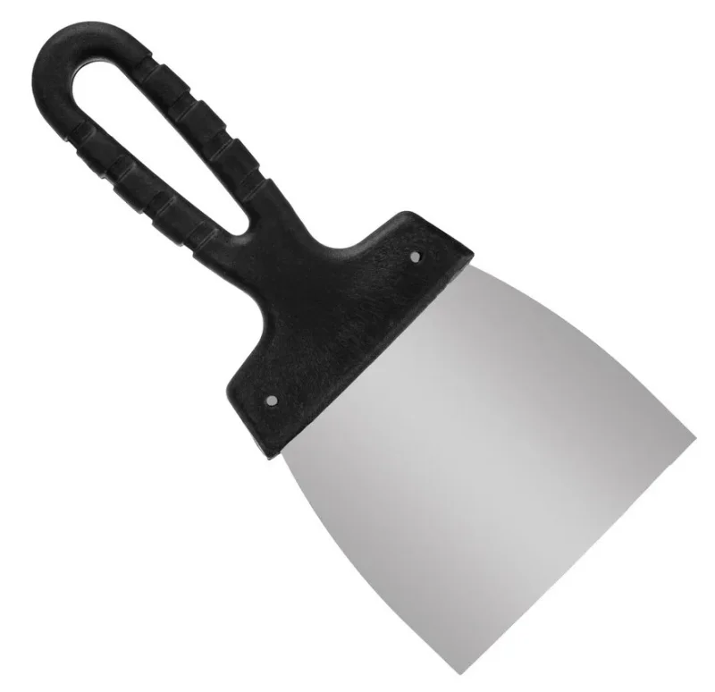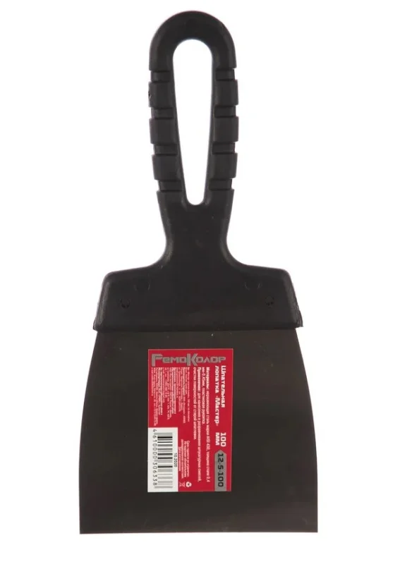 Шпательная лопатка 100мм РемоКолор Мастер 12-5-100 используется для нанесения и равномерного распределения строительных смесей на стенах и потолках при выполнении штукатурно-отделочных работ. Также инструмент подходит для обдирочных работ: очистки поверхностей от старых обоев, краски, лака, шпатлевки.